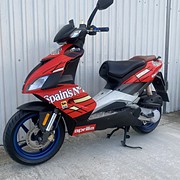 Eladó egy gyári karburátoros, vízhűtéses, Piaggio blokkos Aprili SR 50 Factory. Indul azonnal önindítóval és rúgásra is. Minden működik rajta. Új gumik és fékek. Kevés futott kilométer. Tuningmentes, folytások el lettek távolitva, nagyon jól megy, 80km/h feletti végsebesség. Gyári két kulccsal és eredetét igazoló dokumentumokkal is rendelkezik