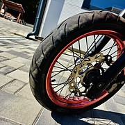 FACTORY kivitel. Erősített eloxált piros kerekek gyönyörű állapotban, hátul Alu himbás állítható felfüggesztés.