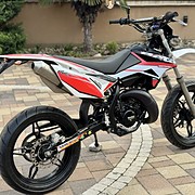 Eladó Beta RR 50 Supermoto. A motorkerékpár gyönyörű,szinte teljesen karc és sérülésektől mentes állapotú.Teljesen eredeti,tuningoktól és utólagos barkácsoktól mentes.Még a henger is eredeti rajta.Minden funkciója kiválóan működik.Gumik,lánc szett,futómű állapota újszerű.A jól bevált eredeti minarelli AM6 motor hajtja.Valóban megbízható,megkímélt darab.Azonnal használatba vehető,nem kell költeni rá.