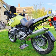 (gyári szélvédő, gyári kipufogó, Garmin navi (bekábelezve), színre fújt BMW Topcase jár mellé).