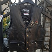 M-es méretű motoros mellény eladó, a képen látható kiegészítőkkel.