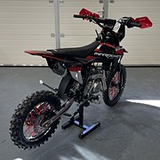 A MiniRocket DT 125cc 4t 17"/14" motorkerékpár teljesítménye 6.3kW, automata váltó, sport kipufogó, első és hátsó hidraulikus tárcsafékek (hátsó-láb), első kerék 17 colos, hátsó kerék 14 colos, első lámpa.