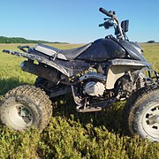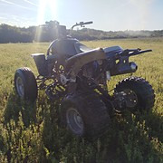 Eladó Shineray 300ccm quad. Nagyon jó léghűtéses motoral. Jó gumikkal fékekkel szépen indul jó a hangja és nagyon jó erőben van. Gyári lámpája nincs meg viszont kapott egy ledes munka lámpát előre aminek brutál a fénye. Komplett első futómü új. Képeken látható esztétikai állapotban. 100% ig használható azonnal hadra fogható.