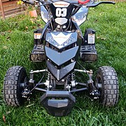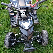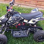 Eladó a képen látható gyerek quad. A gyerek kinőtte,ezért válunk meg tőle.Keveset haszált jó állapotu. Ülésmagassága 46 cm. 5-6 éves kortól használható. első és hátsó tárcsafékek, a gáz korlátozásának lehetősége a fogantyún,üzemanyagtartály térfogata: 1,2 l. Súly: 30 kg. Léghűtéses kétütemű egyhengeres, Vészleállítóval rendelkezik.