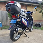 2013-as, két ütemű, nagytestű, léghűtéses, 50 cm3-is, 12 voltos, karburátoros, metálkék színű Explorer Cracker Evo 2 robogó. Eladásának oka, hogy egyszerűen már túlságosan is sok a családban a motor. Lassan olyanokká válunk, mint a filmekben a gyűjtögetők. Még az unokámnak is motorja van már. Függetlenül attól, hogy kire esik a választás, valamiért mindig az enyémet adjuk el. Persze a sok közül legjobbat, legszebbet, legmegbízhatóbbat adjuk el. Leszervizelt állapotban adom át leendő tulajdonosának. Ez alatt értsd: új akkumulátor, új olajtartály, melyet friss olajjal töltöttem fel, benzintank kimosva és 100-as benzinnel feltöltve, ezen kívül benzincsövek, valamint benzinszűrő és benzinszintjelző stb. Még meglévő gyári tartalékkulcs, melyen még a gyári fólia is megtalálható. Ezen felül még új lábszőnyeg, melyet a feleségem csinált meg az eredeti mintájára, mivel sajnos a gyárit a kutya teljesen szétrágta. Még az eredeti fényezés és matricázás. Minimális karc és egy-két pár centis repedés található rajta, de ez a működését egyáltalán nem befolyásolja. Sufnituning és kábelkötöző mentes. Bocs, majd elfelejtettem, a doboz azzal lett felfogatva. Minden műszer, visszajelző rendeltetésszerűen működik rajta. Indul hidegen-melegen berúgókarral és önindítóval egyaránt elsőre. 40-50-et vígan megy. 2-3 literes átlagfogyasztás 100 km-en. Stabil alapjárat. Nem csörög-csattog, szépen jár. Automata sebváltós, ahogy húzod, úgy gyorsul. Az óracsoport plusz az első lámpa egyáltalán nincs bemattulva. Széles, peres kerekei komfortos és biztonságos vezetési élményt nyújtanak, melyek 50%-osak és teljesen egyformák. Munkába járásra vagy igazából ki mire akarja egyszerűen tökéletes. A mai benzinárak mellett igazi forgalmi dugó kerülő. Köztudott, hogy egy motornak nem évjárata, hanem állapota van. És úgy gondolom ez erre is igaz. Azonban ezt mindenki döntse el saját maga, ha eljön megtekinteni vagy akár megvásárolni. Ajándék tele tank benzin, egy túradoboz és egy szkafander sisak, ami gyári napszemüveggel ellátva, valamint egy gombnyomással nyárivá alakítható. Ez alatt azt értem, hogy az állrész teljesen felhajlik. Az ár alkuképes. Irányár 167.000 Ft. Semmiféle csere nem érdekel, csak készpénz. SZÁLLÍTANI NEM TUDOM SEHOVA. Telefonon a nap bármely percében elérhető vagyok, és amennyiben megfelel mindenkinek, inkább azon keressenek, mivel az üzengetés, a Messenger már nem az én világom. Valamint a negatív, rosszindulatú kommentelők kérem mellőzzenek. 06harminc285tizenöt32