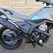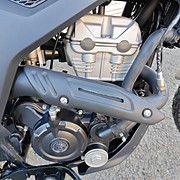 Az acél dupla bölcsős váz egy 41 mm-es fordított első villát tart 177 mm rugóúttal és egy előfeszítéssel állítható hátsó lengéscsillapítót 55 mm rugóúttal, biztosítva a kényelmet és a stabilitást vegyes felületeken.