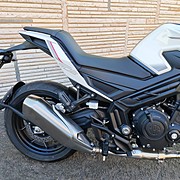 A csúszásmentes, egy darabból álló nyereg agresszívan formált a vezető számára, és széles, megemelt ülést biztosít az utasnak.