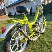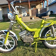 Eladó veterán moped. Három éve lett felújítva. Azóta kb 3 km-t mentem vele. Váz és a kerekek homokszórva és szinterezve lettek. Új gumikat és kerékcsapágyat kapott. Henger frissen fúrva, új asso werke dugó. Dellorto 21-es karbi, polírozott szívócsonk, direkt szűrő, szujó rezó. Négy sebességes minarelli compact system blokk. Nagyon jól megy. Gyári kipufogó és egy bukócső jár hozzá.
