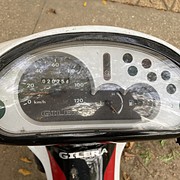 Eladó a képeken látható állapotú 1997-es gyártású Gilera Runner 50 2T robogó. 70-es kínai henger illetve a képeken látható módosítások kerültek rá az előző tulaj által. Jelenleg üzemképtelen. 2018 óta áll, ekkor elindulás után pár perccel nagy csattanással megállt a motor, azóta nem volt használva és megjavítva sem, így csak a helyet foglalja. A variátor is valószínűleg kuka. Váz jó, önindító dolgozik, olajzás nem működik, műszerfal- és külső világítások most nem működnek, kürt, index, féklámpa van. Gumik régiek, fékek ránézésre jók. Kizárólag a képeken látható idomok és alkatrészek vannak hozzá.