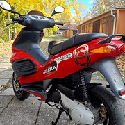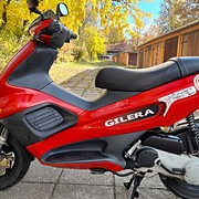 Eladó a képen látható gyári állapotú Gilera Runner SP karburátoros és vízhűtéses sport robogó. Teljesen tuning mentes, gyári fényezés, gyári matrica! Elől-hátul tárcsafékes, automata olajozásos, keveri magának nincs kikötve. Minden tökéletesen működik, pöccre indul és jól megy költségmentes állapotban eladó.