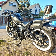 Németországból, első tulajdonosától hozott, sérülésmentes, szinte szalonállapotú kis cruiser VÉGIG vezetett szervizkönyvvel extrákkal ( Hepco-Becker bukócső, háttámlás csomagtartószett, telefontartó ) vadonatúj gumikkal költségmentesen névre írva várja igényes Mo.-i új tulaját.