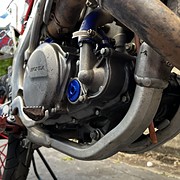 Csereberéltem, egy igazit még nem mentem vele. Azt mondták 80-90 óra van benne. Amikor hozzám került raktam rá egy órát. Csak a dob FMF.