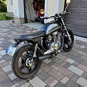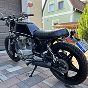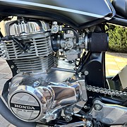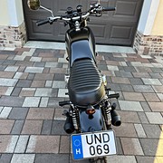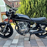 A motor egyedi megjelenésű, igényesen átalakítva és felújítva. Az eredeti óraállás 50000 km körül volt, ezzel lett behozva. Én már az új km óra állással vettem, átalakítva. Aztán néhány száz km megtétele után elkezdett szivárogni az olaj és innentől elkezdődött egy felújítás, ami aztán ahogy haladtam előre, majdnem egy teljes felújítás lett. Így most nagyon sok minden cserélve van, amiből volt gyári alkatrész az arra, ami pedig már nem volt kapható gyáriban az utángyártottra. A cég aki készítette az előző tulajdonosnak, esztétikailag nagyon szép munkát végzett, de a motorblokk és a hajtás illetve a fékek, igazi kóklány munka. Ezekről is vannak képeim amikor szétszedtem, akit érdekel privátban el tudom küldeni. Mértem egy kompressziót ami teljesen jó volt, majd kivettem a blokkot és szétszedtem. A hengerfejet elvittem felújíttatni, a hengert és a dugattyúkat elvittem beméretni. Mivel minden a megadott határértéken belül volt így csak a gyűrűk lettek új gyárira cserélve. Új az összes tömítés, a hengertőcsavarok, a szelephimba tartó öntvények (ezekbe bele voltak szaggatva a menetek), az olajpumpa lánc és a fogaskerekei, a szelepfedél csavarok, a dekni csavarok és még sorolhatnám. A karburátor teljesen felújítva, minden ami kiszedhető belőle az kicserélve. A főfékhenger teljesen felújítva, az első féknyergek teljesen felújítva, a hátsó fék teljesen felújítva. Ezeknél is minden cserélve, ami csak kiszedhető belőle, porvédők, karmantyúk, fékbetétek stb. Elöl Goodridge fém fékcsövek vannak. Szereztem hozzá fordulatszám kihajtást és szimeringet, sikerült egy spirált is, majd vettem egy fordulatszámmérőt, így most az is működik. A kerekeknél az összes csapágy, szimering, porvédő cserélve, a hátsó lánckerékbe a menesztő gumik és a hozzátartozó alumínium távtartók. Új lánc és lánckerekek, az első teleszkópok is fel vannak újítva Wilbers progresszív rugós szettel, a hátsó rugós tagokat is cserélni kellett mert folyt belőlük az olaj. Ide állítható Hagon került. Nagyjából ennyi, biztos vannak még dolgok amiket kifelejtettem a felsorolásból. A motor ezzel a kinézettel már többször vizsgázott, nem kell vissza alakítani a vizsgához. Zárszónak még annyit, hogy a motor 45 éves, sok minden ki van cserélve, de ez egy ilyen korú motornál sem garancia arra, hogy esetleg majd valamit javítani kell rajta, a veteránozás az ilyen. Ennek tudatában lehet nyugodtan érdeklődni a megadott telefonszámon, mindenre szívesen válaszolok.