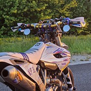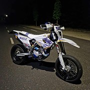 Eladó Husaberg FE501 530 üzemórával, BOLD Design matricaszett, és üléshuzat alatta zselés ülés, Clake kézi hátsófék, kék eloxált kiegészítők, futófényes indexek, karbon tankburkolat, ledes fényszóró, FMF végdob, elöl Excel felni, hátul menesztős Talon felni.
