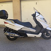 Kedvező fogyasztású (kb 2.5 liter), dinamikus és nagyon kényelmes cirkáló keresi új gazdáját. Ideális városi körülmények közt, de országúton is megállja a helyét. 28000 Kilométert futott, szervízkönyves darab, jó szerkezeti és motorikus állapotban, 2 év műszakival, új gumikkal és kb 1000 kilométerrel ezelőtt felújított variátorral. Olajcsere 27000-nél megtörtént szűrőkkel együtt. A levehető Kappa doboz jár a motor mellé, az ülés alatt pedig hatalmas csomagtartó található, így túrákra is könnyen alkalmas. Érdeklődni üzenetben vagy a 06302868563-as telefonszámon lehet.