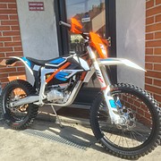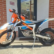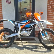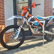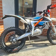 Eladó a képeken látható szinte vadiúj állapotban lévő teljesen gyári felszereltségű KTM Freeride E-XC elektromos enduro motorom, összesen 650Km-t futott újkora óta. A motorhoz jár a gyári 2db kulcsa, kódkártyája, 220V gyári töltője, amivel kb. 0ról 1-1,5 óra alatt képes feltölteni teljesen az aksiját és az összes gyári tartozéka, papírja is. A motor magyar rendszámos, papíron 9 KW-os, A1 jogsival vezethető, 2028-ig januárig műszakival rendelkezik. 2024 januárjában lett újonnan vásárolva Magyarországon a KTM Centrumba. A motornak brutál a teljesítménye. 3 különböző fokozat van rajta, amiket lehet állítani, mind háromnál különböző teljesítményt ad, a hatótáv is ettől függ, hogy van használva. Egy töltéssel kb. 50-80km-t tud elmenni. Minden elektromos berendezés hibátlanul működik rajta...