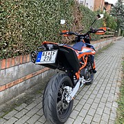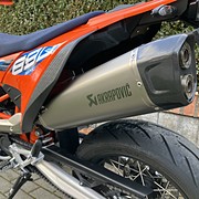 Eladó a fotókon látható még nem egészen 1 éves KTM 690 SMC R! Karcmentes új állapotban, garantált 2.630 KM futással! Magyarországon újonnan vásárolt motorkerékpár, első tulajdonostól, összes gyári dokumentációjával, eredeti kulcsaival, KTM márkaszervizben vezetett szervizkönyvvel, természetesen érvényes gyári garanciával! A motor minden tekintetben kifogástalan, szalon új állapotú! Extrák: "E" jelzéssel ellátott Akrapovic kipufogó (500.000 Ft-ba került), kivehető hangtompítókkal, típusbizonyítvánnyal (eredeti kipufogó is megvan), gyári gyorsváltó, keréktengely bukógomba, haspáncél, rövid rendszámtábla tartó (gyári is megvan)! Írásos garanciát vállalunk a futott KM-re és a motorkerékpár balesetmentes gyári állapotára!