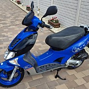 Eladó a képeken látható megkímélt állapotban lévő Kymco Super9 típusú 50ccm 2 ütemű robogó. Eredetét és évjáratát igazoló gyári okmányaival. Minden tökéletesen működik rajta bármikor elsőre indul önindítóval és berúgóval egyaránt, erős csendes dinamikus és nagyon megbízható motorral, új garanciális akkumulátorral, új tükrökkel, új kipufogóval, erős fékekkel e-h tárcsa, karburátoros, különolajzós, vízhűtéses, ülés alatt nagy csomagtartó 2db gyári kulcsával költségmentes állapotban eladó. Szállítás megoldható.