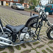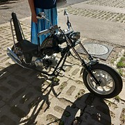 Eladó a képeken látható mini chopper. A képek között van ami viszonyítást ad a méretéhez. Hogy ne legyen félreértés!!! Tehát gyerekméretű motorka, de nem mondanám pit bikének. Ülésmagasság 40 cm. Az állapotát a képek tükrözik. Önindítós, és berúgós. Rendbetéve, átnézve, vezetékelve, új folyadékokkal, új zselés akksival, harcra készen. Nem faragott, hanem gyári, csak ritka. 4 sebességes körváltós, négy ütemű, 50 köbcentis. Megy mint a meteor, felnőtt alatt is, de ha a fiaddal körbe motorozol egy találkozón, akkor lesz nézőtök. Csere max 100-ig amit meghallgatok. Kösz!