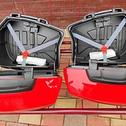 Eladó gyári BMW oldaldobozok recing red színben. Gyári cikkszámok: 77418556479 77418556480