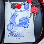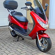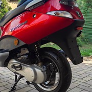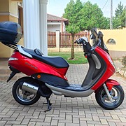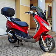 Nagytestű Peugeot Elystar robogó 50ccm 2T karburátoros léghűtéses kevés kilométerrel, szép esztétikai állapotban jó motorral és menetteljesítményel, összes gyári dokumentumával, csoamgtér konzollal és gyári nagy méretű Peugeot dobozával együtt!