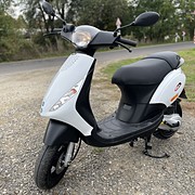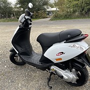 Piaggio New ZIP 50ccm 2t, léghűtéses olasz robogó. Elegáns fehér színben, fekete üléssel.
