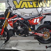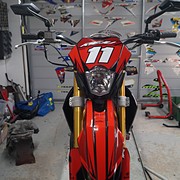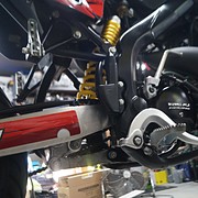 Elől R16V fordított teleszkóp, hátul R16V csillapító gázos alu lengőkar, DUAL fékrendszer, TECNIGAS kipufogó rendszer.