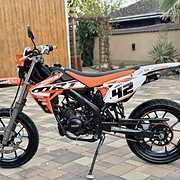 Eladó egy szinte új állapotban lévő Rieju MRT 50 Supermoto.2019-es évjárat,keveset futott motor.Ha egy valóban tökéletes állapotú motort keresel,ami még nem volt barkácsolgatva akkor kiváló választás.A jól bevált AM6 motor hajtja,ami bontatlan eredeti állapotú.Burkolatok eredetiek,nincs rajtuk egy karcolás sem.Teljesen új gumik.Hosszú távon is költség mentes,megbízható motor.Természetesen minden eredeti papírja és kulcsa meg van.