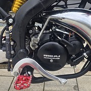 A fék kar a kuplung kar a lábtartó a féktartály a váltókar új szinterezett mart alumínium. Pro tapert szélesítet kormány.