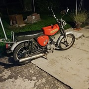 Simson SN51 típusú 1983-as évjáratú segédmotorkerékpár okmányok nélkül eladó Sarkadon. A jármű teljesen működőképes, használható. Mindkét kerekén új kerékgumik. A motor eredeti német Simson motor. Karburátor új.