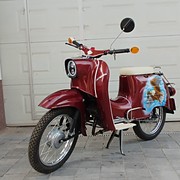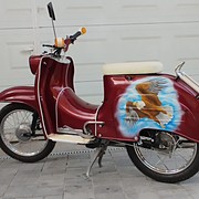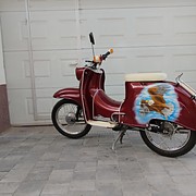 Egyedi kinézet, igényeseknek ajánlom, elöl ledlámpa, motorja felújított, felújítás óta pár száz kilómétert ment, elöl-hátúl kompletten új kerék gumikkal. Adattábla cm 50 mentes. Studióban festett sas grafika(nem matrica)Napi használatra is alkalmas, üzletek kirakatában is szépen mutatna. Az ára fix.