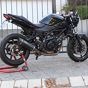 Ilyen lett volna ha a Suzuki megcsinálja az SV 650 R-t. Nagyjából a Britt Ultratwin szabályokkal megegyező átalakításon esett át, de maradt utcán is használható. Ehhez az alábbi dolgokat cseréltem rajta: Elől Andeani Misano EVO 2 cartrige kit - Hátul K-Tec Razor-R rugóstag - Arrow leömlő - Bodis P-TEC II dob - Programozás Prop-tech-nél - JHS Fork brace első villa merevítő - Magura HC1 főfékhenger - Fém fékcső - EBC EPFA158HH fékbetét - Didvx3 Lác, JT (15/47) lánckerék - R&G Tail Tidies Rendszámtartó - Bridgestone S22 180/55 hátsó és S23 első gumi - Kormányvég tükrök. Első években napi használós motor volt, de az elmúlt 2 évben szinte csak pályázni jártam vele (Kakucs, M-ring, Euroring). Soha nem estem vele, néhány használatból adódó kopás van rajta. Adok hozzá új GB Racing blokkvédő garnitúrát és egy tankgrippet amit én már nem raktam fel. Szivesen válaszolok bármilyen kérdésre, és mesélek a motorról, hogy mit miért csináltam rajta.