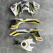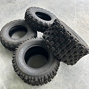A quadhoz jár egy szett terep gumi és idom szett illetve egy láda alkatrész.