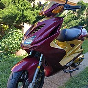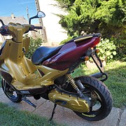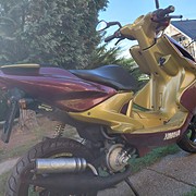 Eladó képeken látható Yamaha Aerox 50 ccm 2t különolajzós, hidegen melegen könnyen indul fekvő minarelli blokk, vízhűtéses, elől hátul tárcsás, jó mintajú gumikkal. 80-90 km sebességet tudja, erős dinamikus csendes halk motorral.