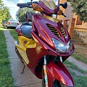 Eladó képeken látható Yamaha Aerox 50 ccm 2t különolajzós, hidegen melegen könnyen indul fekvő minarelli blokk, vízhűtéses, elől hátul tárcsás, jó mintajú gumikkal. 80-90 km sebességet tudja, erős dinamikus csendes halk motorral.