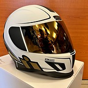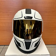 A sisak teljesen új, átlátszó és ezüst tükrös plexivel együtt van szállítva, sisakzsákjával, dobozában.