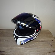AGV K3 SV napszemüveges zárt bukósisak, jó állapotban eladó. Irídium kék plexivel. Beépített napszemüveg. Arc és fejtető szellőzés. Kivehető mosható bélés.